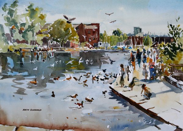 This is a painting of the lake at Etherow Country Park at Compstall.